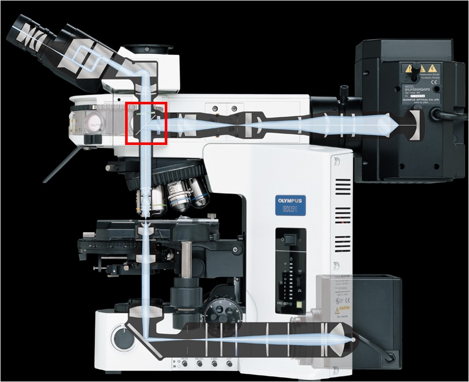 투과조명 형광관찰법은 암시야용 콘덴서, 필터가 이용됩니다. 여기필터