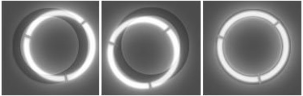 - 대물렌즈의 위상차 링(지연판, 감쇄판)안에 과 상성이 맞는 콘덴서의 링 슬릿이 위치하도록 Centering Telescope를 관찰하면서 조정합니다. 이 작업은 사용하는 위상차 대물렌즈 전부를 개별 적으로 시행합니다.
