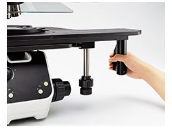The XY stage is capable of both coarse and fine stage movements thanks to the combination of a built-in clutch and the XY knobs. The stage helps make observations efficient, even for large samples, such as 300 mm wafers.