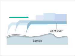 캔틸레버와 샘플 사이에서 작동하는 반발력이 일정하게 되도록 제어하면서 캔틸레버를 정적으로 스캔하며 샘플의 높이를 이미지화 시키다. 힘 곡선 측정에도 사용 할 수 있습니다.