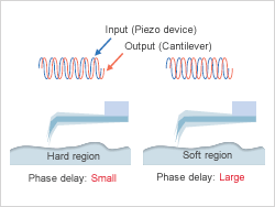 다이나믹 모드에서 스캐닝하는 동안 캔틸레버 진동의 위상 지연을 감지합니다. 샘플 표면의 물리적 특성의 차이를 이미지화 할 수 있습니다.