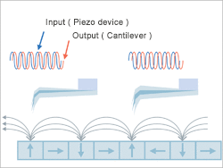 OLS4500은 끝에 탐침 (프로브)을 배치 한 캔틸레버의 미세한 굴곡 량 (변위)를 고감도로 검출하는 광 지렛대 방식을 사용. 레이저 빛을 캔틸레버 후면에 반사시켜 광 검출기의 일정한 위치에 맞게 압전 소자에서 Z축으로 구동시켜 미세한 Z축 방향의 변위를 정확하게 읽습니다.